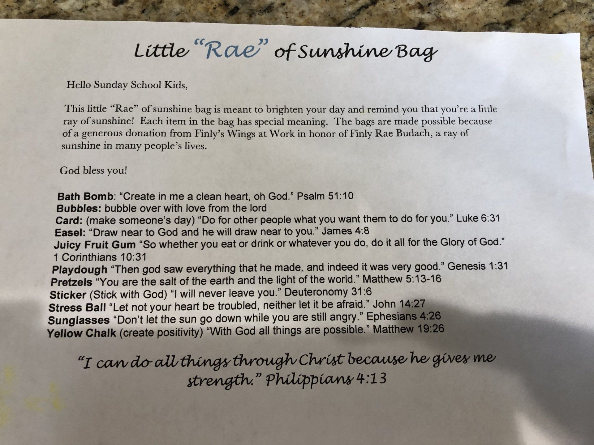 It brings us great joy to see Finly's name and to hear people talking about her. And through FWAW we are able to spread her love and generosity. Here are some of Finly's most recent donations to children and her local community.